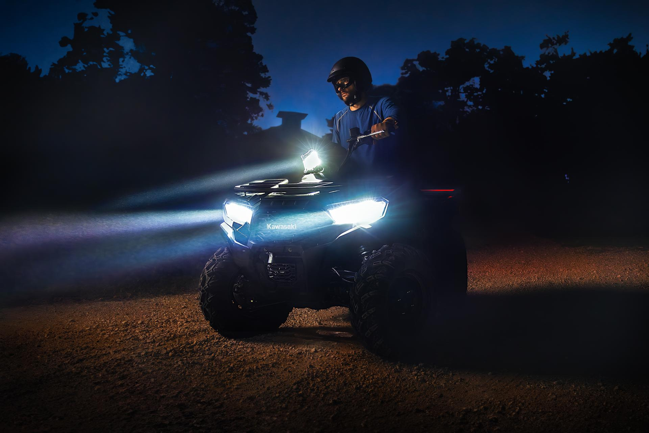 Featured on the front grille in an eye-catching way, the 3D “Kawasaki” emblem ties the BRUTE FORCE 450 to the Kawasaki family and is sure to be a point of pride for owners.