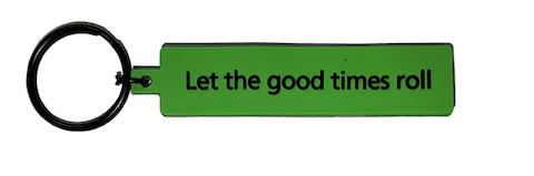 - The reverse side has ‘Let the good times roll’ tag line in black on lime green.