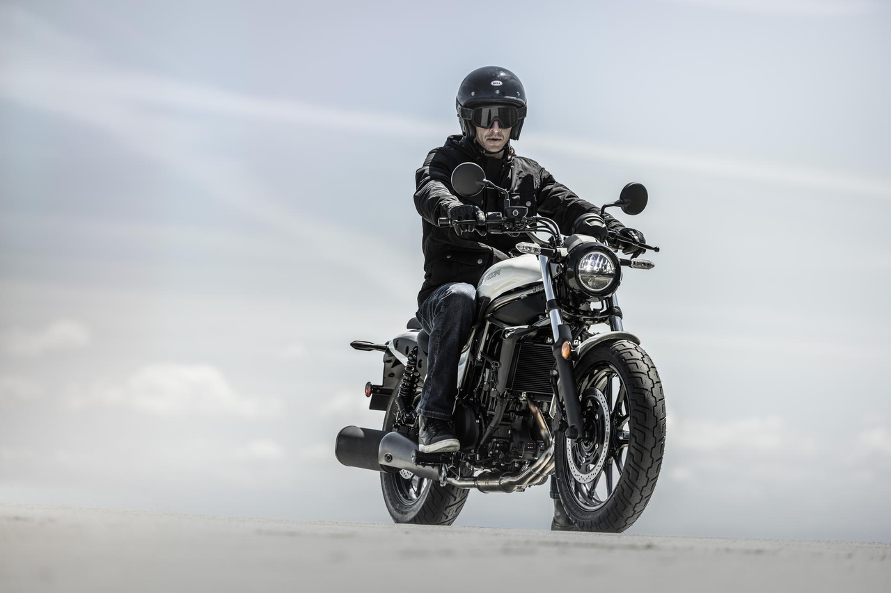 A modern reinterpretation of the long and low style of the original Eliminator is complemented by a versatility that lends itself to any lifestyle. Horizontal lines that draw the eye from front to rear, the low seat, and low, flat handlebar hint at the new Eliminator’s active riding potential and a light-footed manoeuvrability, as if to be able to glide lightly over the ground.