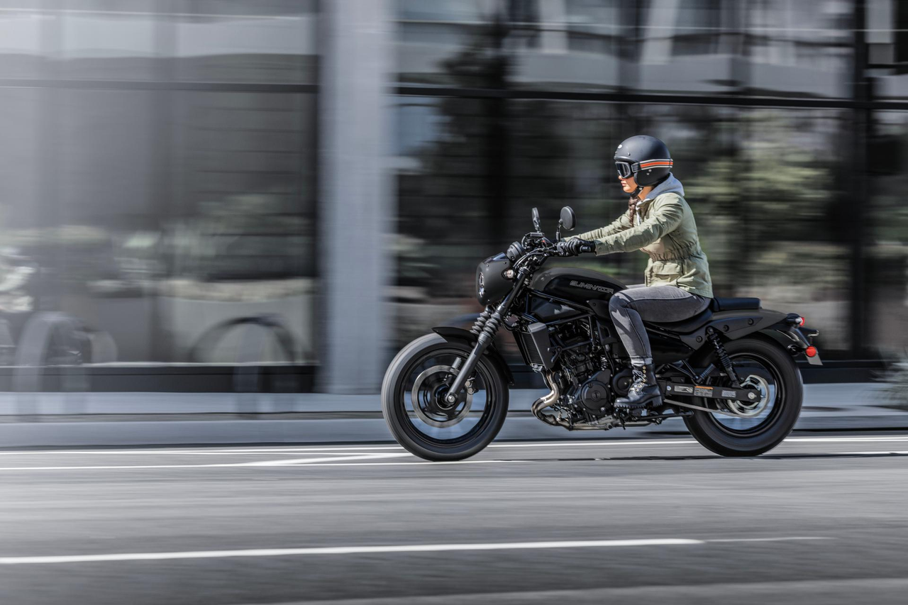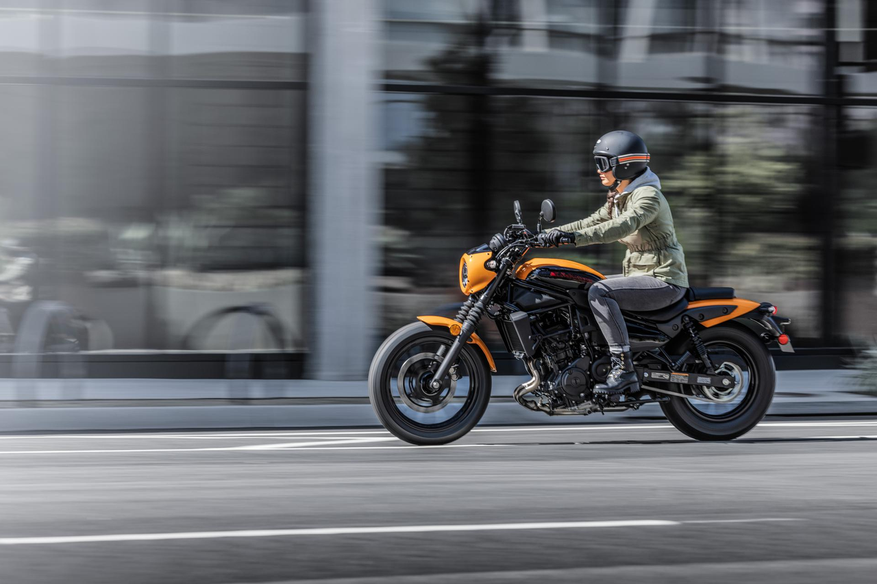 A modern reinterpretation of the long and low style of the original Eliminator is complemented by a versatility that lends itself to any lifestyle. Horizontal lines that draw the eye from front to rear, the low seat, and low, flat handlebar hint at the new Eliminator’s active riding potential and a light-footed manoeuvrability, as if to be able to glide lightly over the ground.