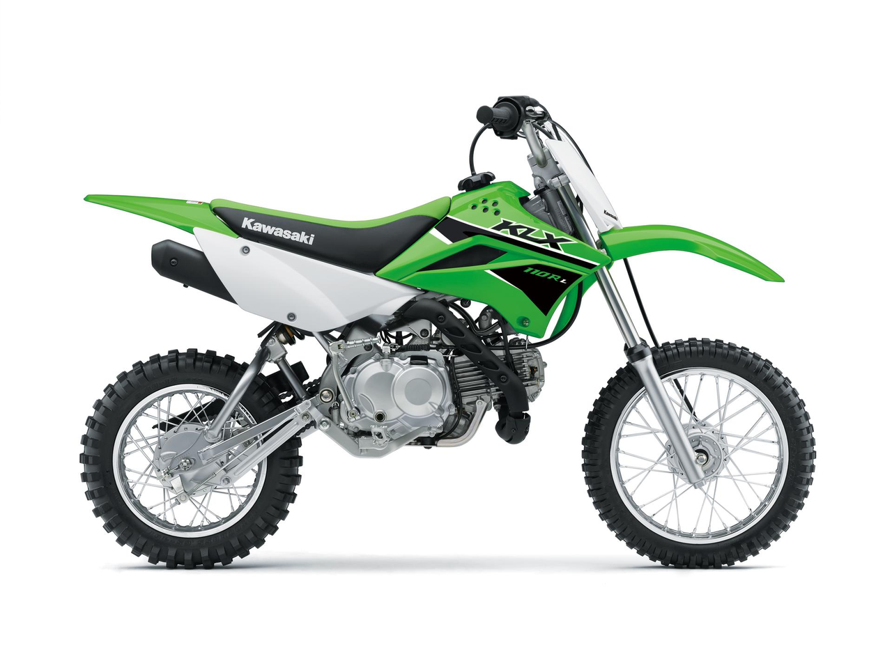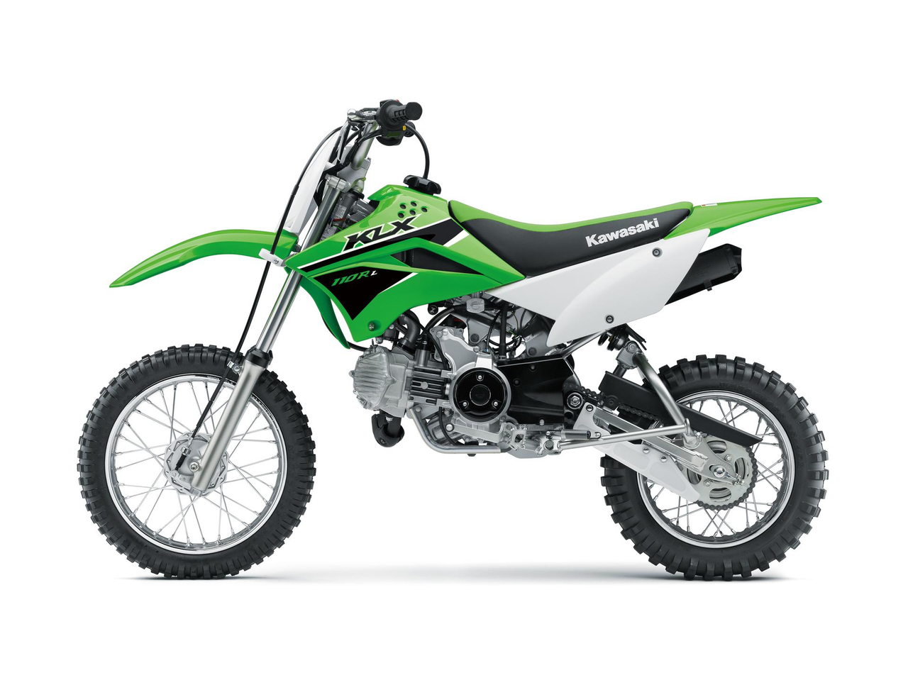 KLX110R motorcycles are powered by a 112 cc air-cooled four-stroke engine. The KLX110R features a 4-speed transmission with automatic clutch while the KLX110R L offers a manual clutch to learn big-bike shifting techniques.