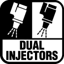 Dual Injectors, each with a distinct role, operate at different rpm ranges, to deliver both quick response and increased high-rpm power.