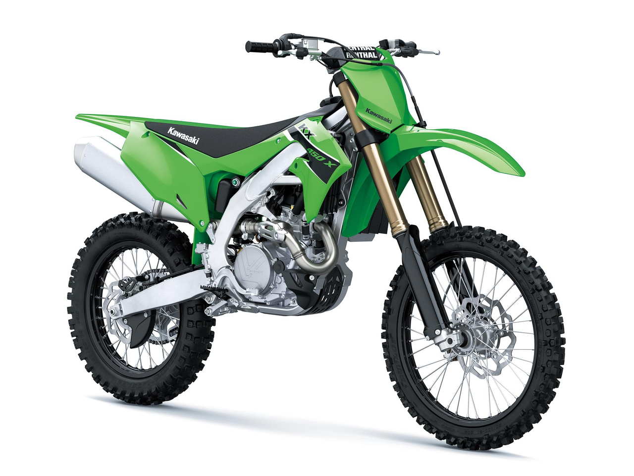 KX factory-style skid plate and a convenient side stand are both standard equipment.