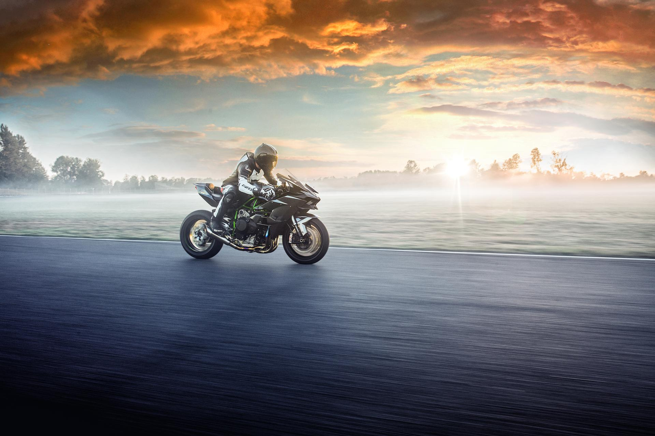 It is no accident that when viewed from the side, the Ninja H2R does not seem to have the aggressive forward-canted stance of most modern supersport models.