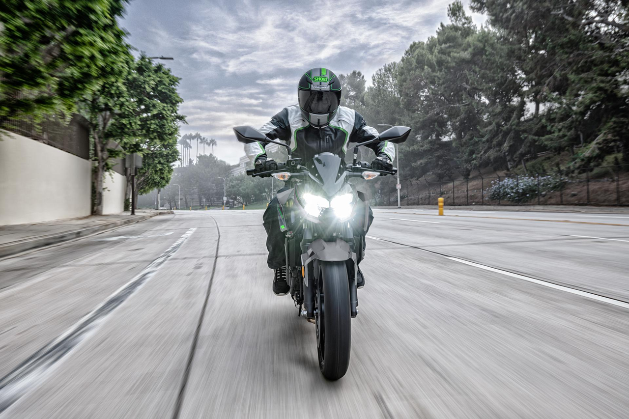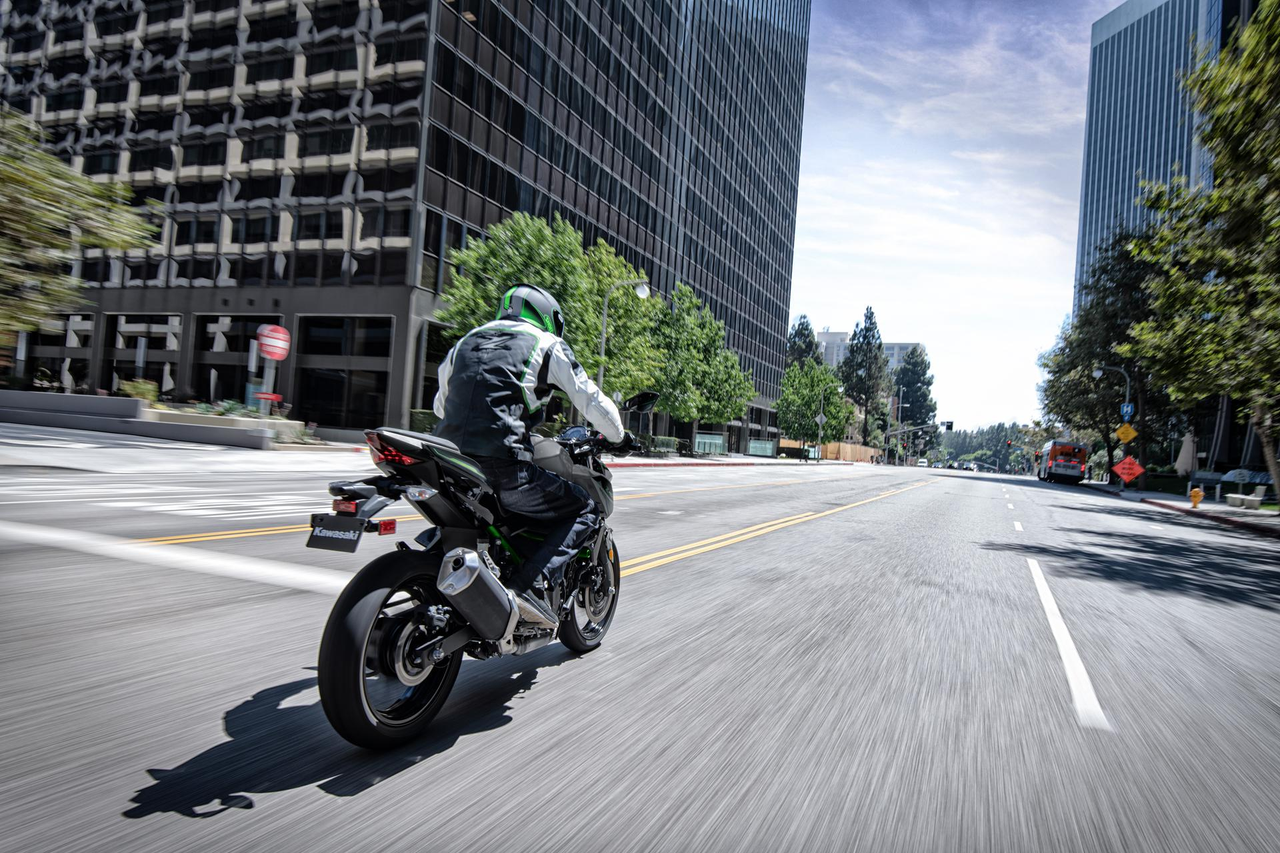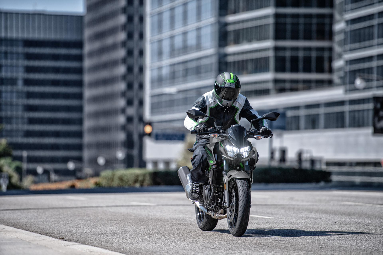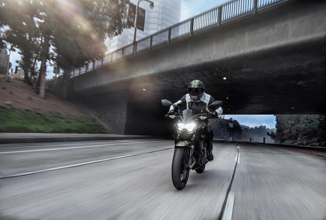 Combining the sharp, aggressive style of the Z650 with the large-volume bodywork of its predecessor creates an aggressive, agile, masculine impression. Its muscular, athletic bodywork reflects its sporty performance while forming a flowing design that appears to float above the engine. Like other models in the Z series, sugomi design elements (crouching stance, low-positioned head and upswept tail) give the Z400 a silhouette instantly recognisable as a Kawasaki Supernaked.