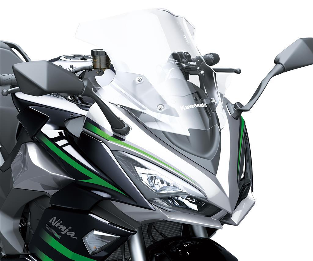 Scratch-resistant clear windscreen, designed to provide additional rider comfort.