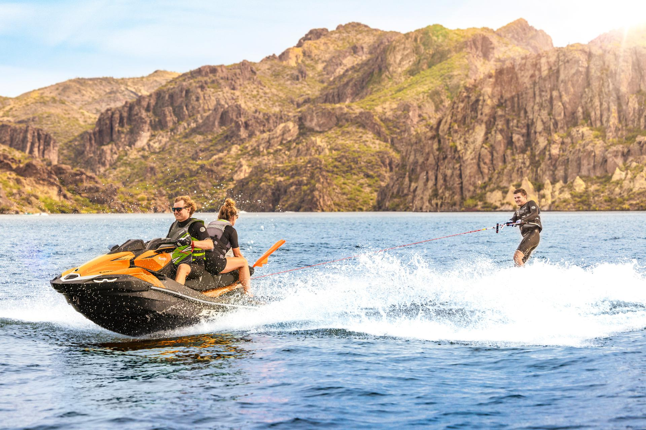 Get everything you need to enjoy a thrilling day out on the water. 3-passenger seating and a powerful 1,498 cc engine ensure a day to remember for the entire crew. The modern hull design, same as the flagship Jet Ski Ultra 310 models, is something worth showing off whether you're parked in the driveway or in the water.
